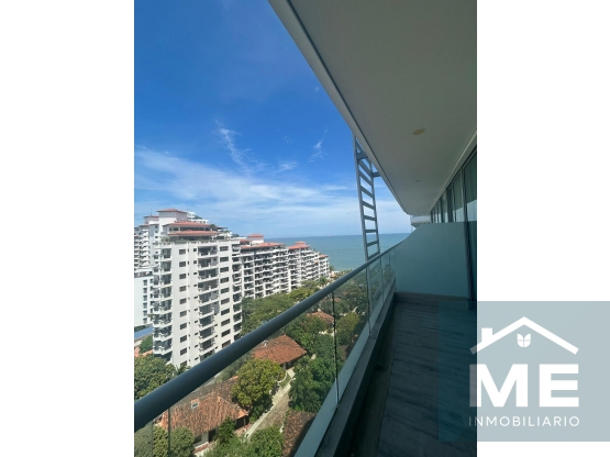 El apartamento cuenta con un área de construcción de 77 M2, cuenta Con Una alcoba 2 baños completos, cocina integral tipo americano, aire acondicionado integral, armarios empotrados, amoblada completamente para vivir. Tiene un agradalbe balcon con vista lateral al mar.